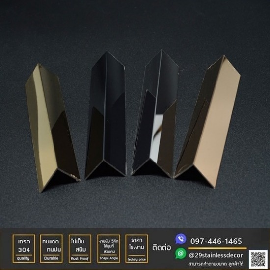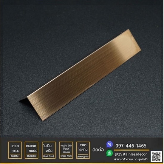 คิ้วสแตนเลส ตัวเข้ามุมสีโรสโกลด์